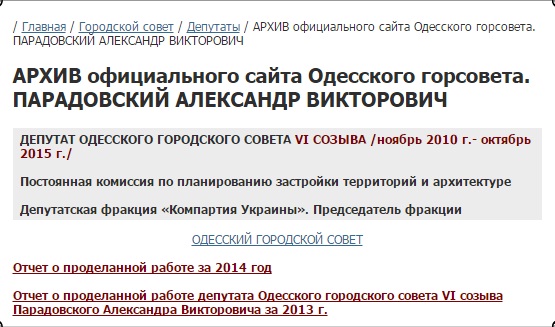 Еще одним совладельцем фирмы «Тирас» является Юрий Парадовский экс-депутат Одесского городского совета VII созыва от Коммунистической партии Украины.