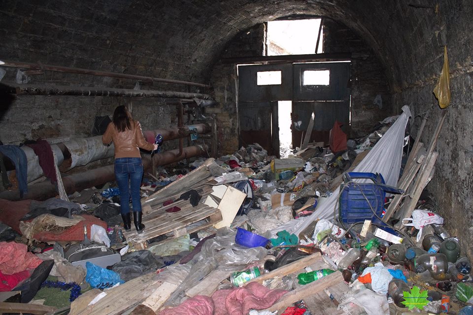 Активист общественного движения «Зеленый лист» Владислав Балинский решил обследовать нижние арочные галереи под пролетами Потемкинской лестницы и обнаружил там большое количество горючего мусора.