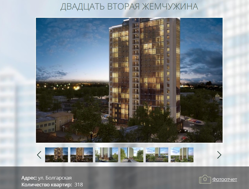 Отметим, что на сайте этой компании сказано, что на улице Болгарской во втором квартале следующего года будет сдана очередная, 22-я по счету "Жемчужина".