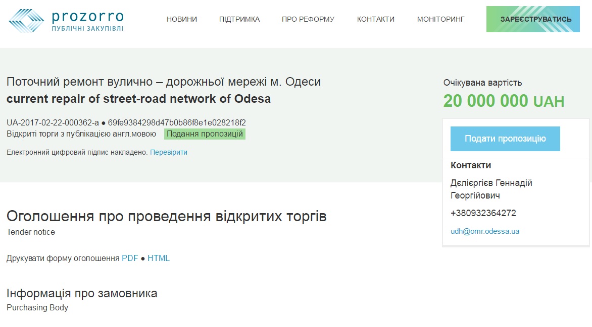 Управление дорожного хозяйства Одесского городского совета объявило тендеры на ремонт улично-дорожной сети Одессы, за который победитель может получить около 20 миллионов гривень и на ремонт улично-дорожной сети и объектов благоустройства коммунальной собственности и общего пользования, расположенных в Одессе.