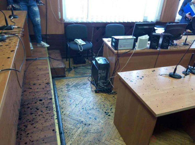 На такое требование судья заявил, что они не являются стороной процесса и не могут заявлять любые ходатайства. После этого активисты залили судью и зал зеленкой, чем сорвали заседание.