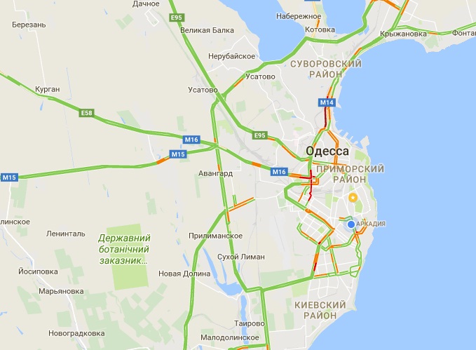 Согласно карте сервиса Google, масштабные пробки наблюдаются также в районе Молдаванки. Также наблюдаются заторы в Киевском районе города. Водители жалуются на заторы на Французском бульваре, Краснова, Атамана Головатого.