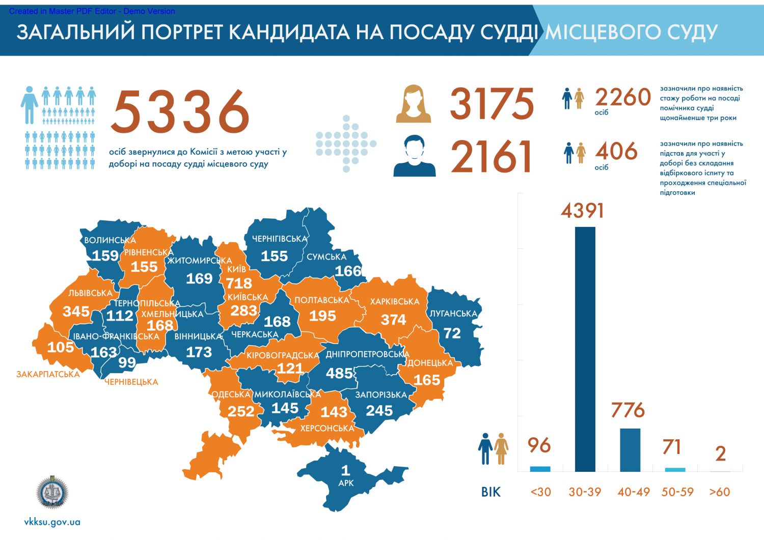 Причем в самом Киеве судьей хотят стать 718 человек. Всего в Украине на должность судьи местного суда претендуют более 5,3 тысячи человек. Большинству из них по 30-39 лет.