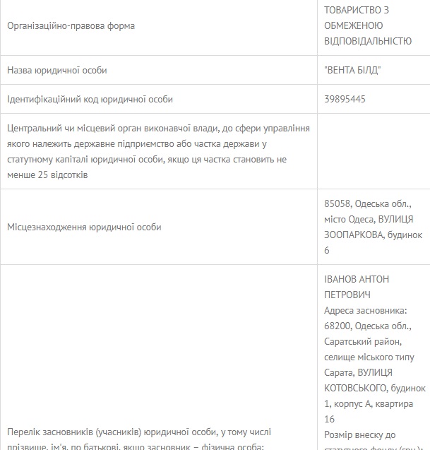 Согласно единому реестру юридических лиц, физических лиц-предпринимателей и общественных формирований владельцами общества с ограниченной ответственностью «Вента Билд» являются Олег и Антон Ивановы компания была зарегистрирована в 2016 году.