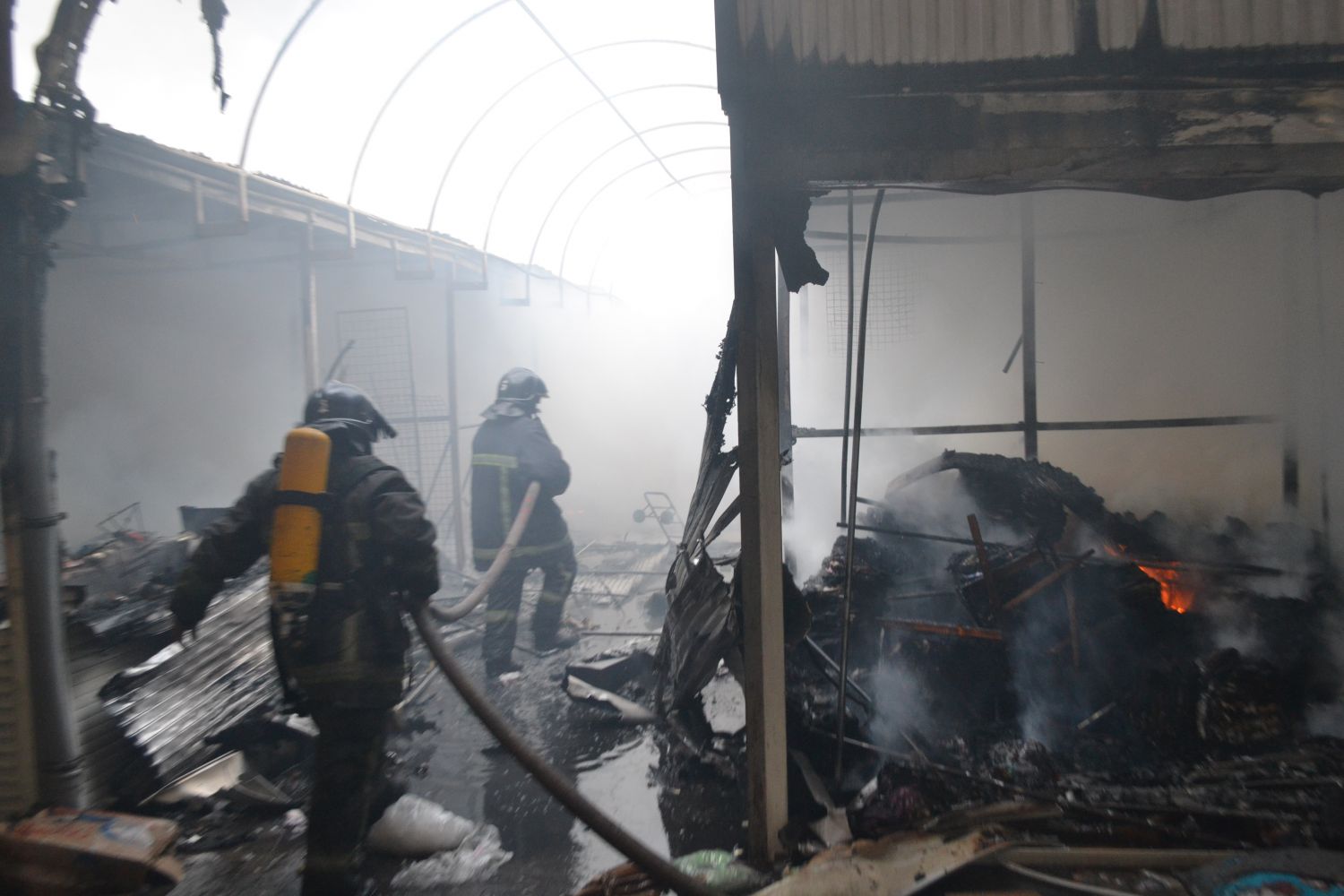 В результате пожара уничтожено и повреждено около 143 торговых павильонов. Причина возникновения пожара устанавливается.