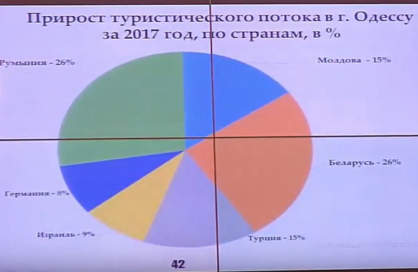 Департамента культуры и туризма Одесского городского совета за 9 месяцев 2017 года насчитал 2 миллиона 200 тысяч туристов, посетивших Одессу.