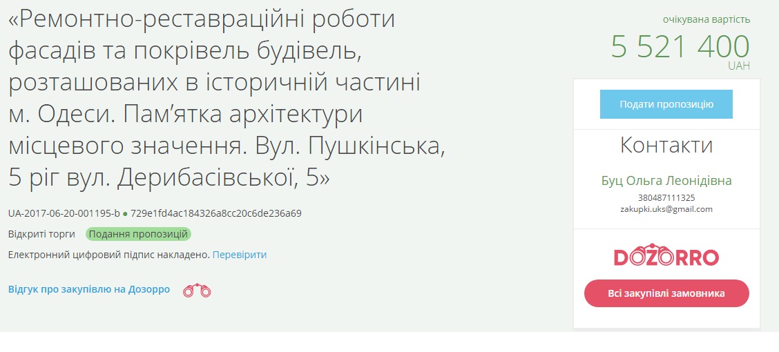 За реставрацию фасада здания на углу Дерибасовской и Пушкинской предлагают 5 миллионов гривень