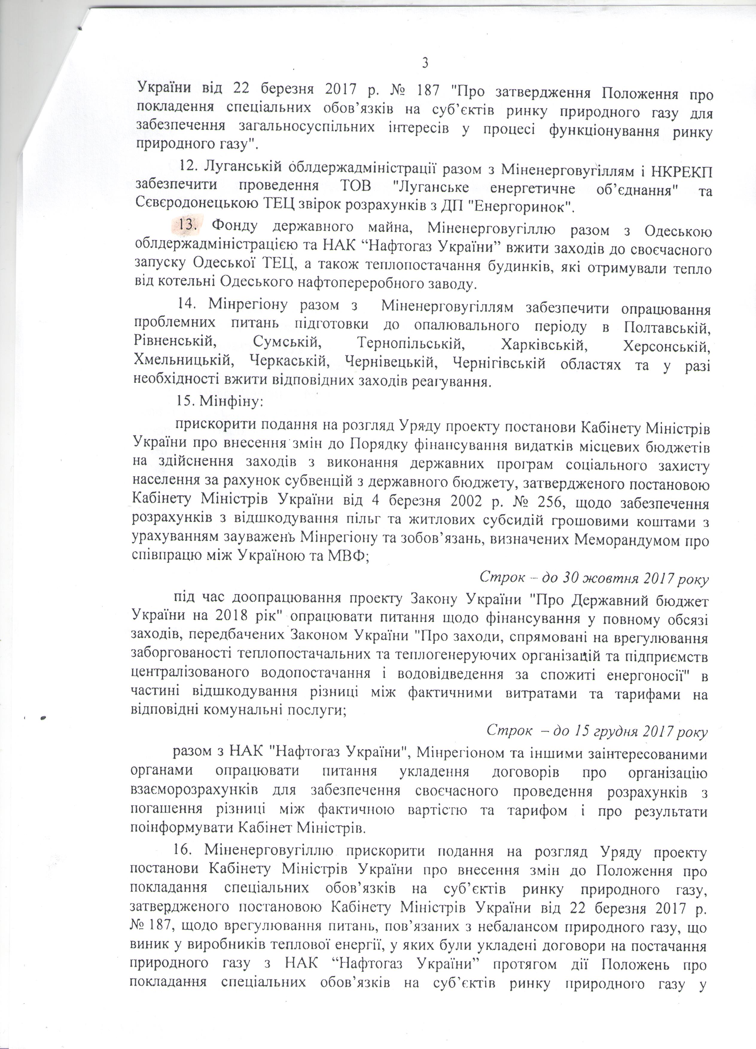 облгосадминистрацией и НАК «Нефтегаз Украины» принять меры для своевременного запуска Одесской ТЭЦ, а также теплоснабжения домов, которые получают тепло от котельной расположенной на территории нефтеперерабатывающего завода.