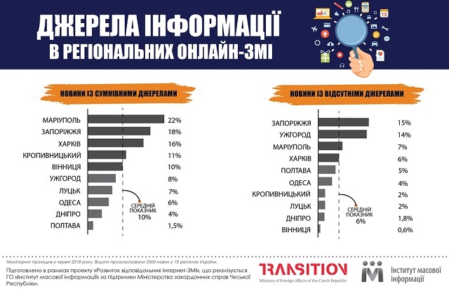 Институт массовой информации при поддержке Министерства иностранных дел Чешской Республики исследовал источники информации в десяти городах Украины в июне 2018 года.