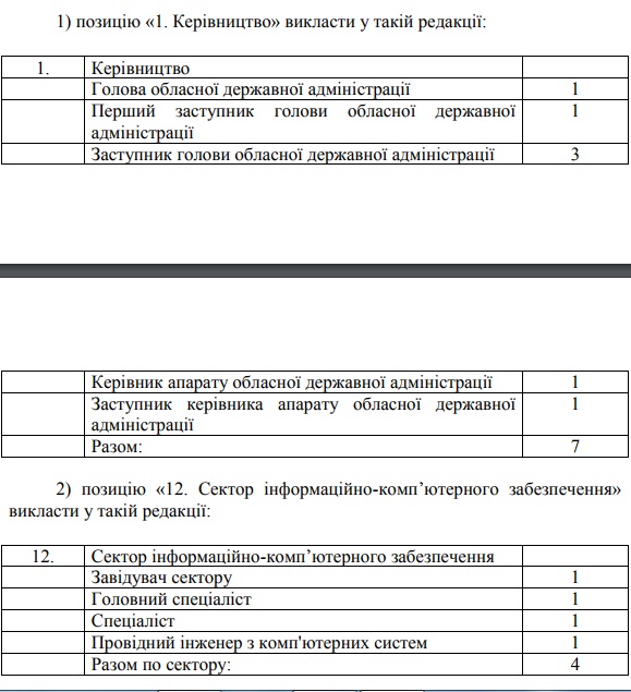 Согласно распоряжению, вместо одной должности: заместителя председателя - руководителя аппарата областной государственной администрации, глава ОГА ввел две - заместитель председателя областной государственной администрации и, собственно, руководитель аппарата.