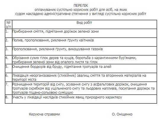 В частности, исполком должен утвердить перечень оплачиваемых общественно-полезных работ, а Южному межрегиональному управлению по вопросам исполнения наказаний и пробации Министерства юстиции Украины рекомендовать направлять «приговоренных», в коммунальное предприятие «Горзелентрест».