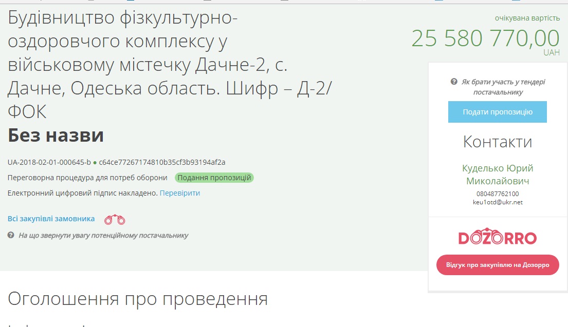 Об этом сообщили в системе электронных закупок Рrozorro.