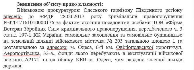 Землю воинской части под Одессой застраивает фирма «Ветеран Вооруженных сил», - волонтер
