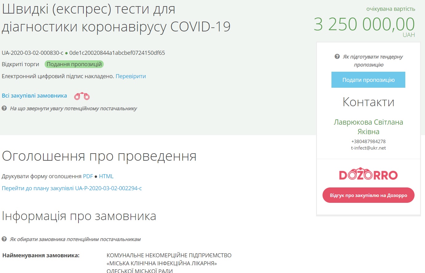 Аукцион, с ожидаемой стоимостью закупки 3 миллиона 250 тысяч гривень, состоится 19 марта.