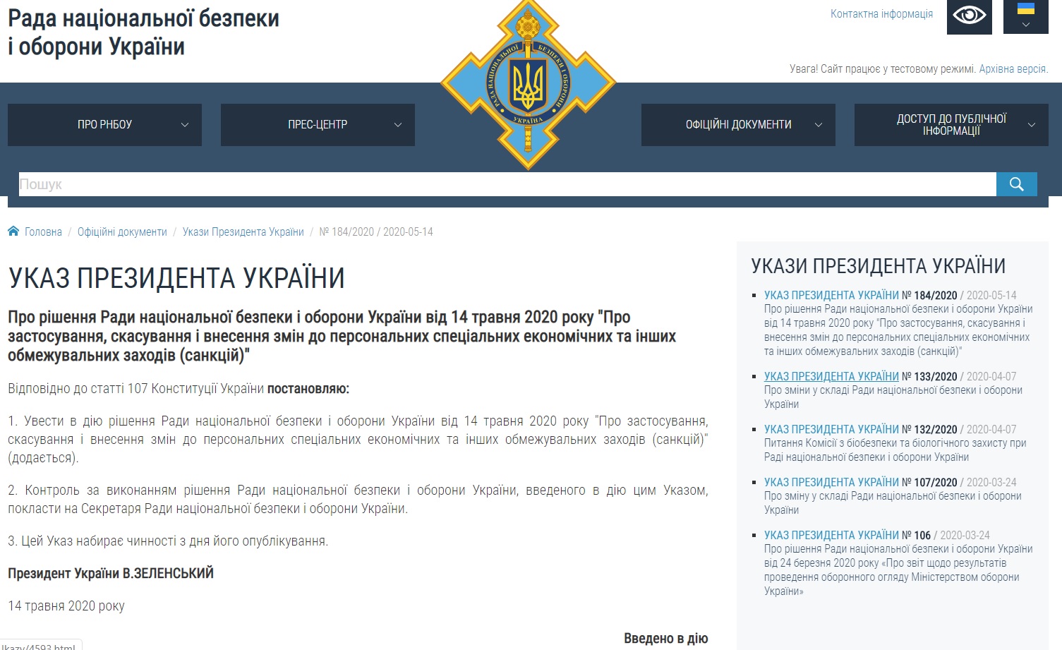 Соответствующее решение совета поддержал своим указом президент Украины Владимир Зеленский, сообщает Центр журналистских расследований.