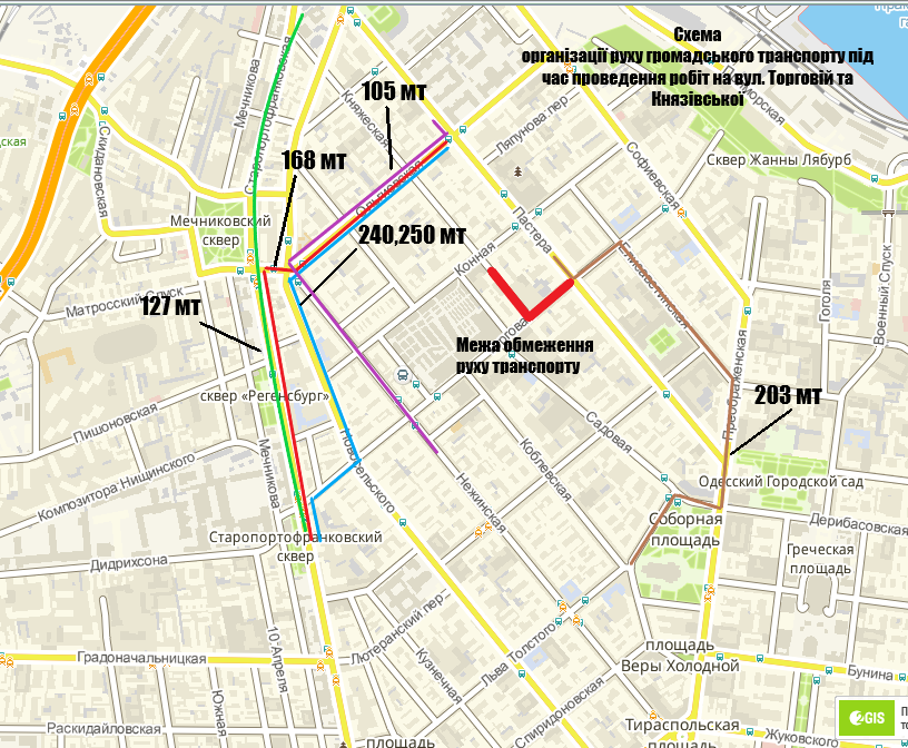- в направлении движения к Пересыпским мостам - от ул. Старопортофранковской на ул. Ольгиевскую и далее по маршруту;