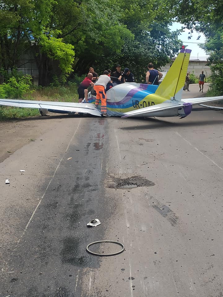 Легкий самолет с двумя пилотами упал в районе в районе 4-го Аэропортовского переулка прямо перед проходившим мимо одесситом Александром Николовым.