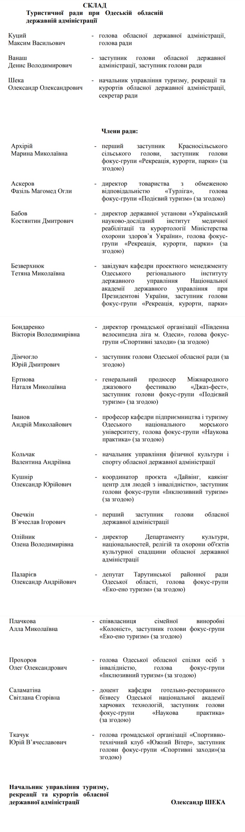 Глава Одесской областной администрации Максим Куцый подписал распоряжение о создании при ОГА туристического совета, который сам же и возглавит.