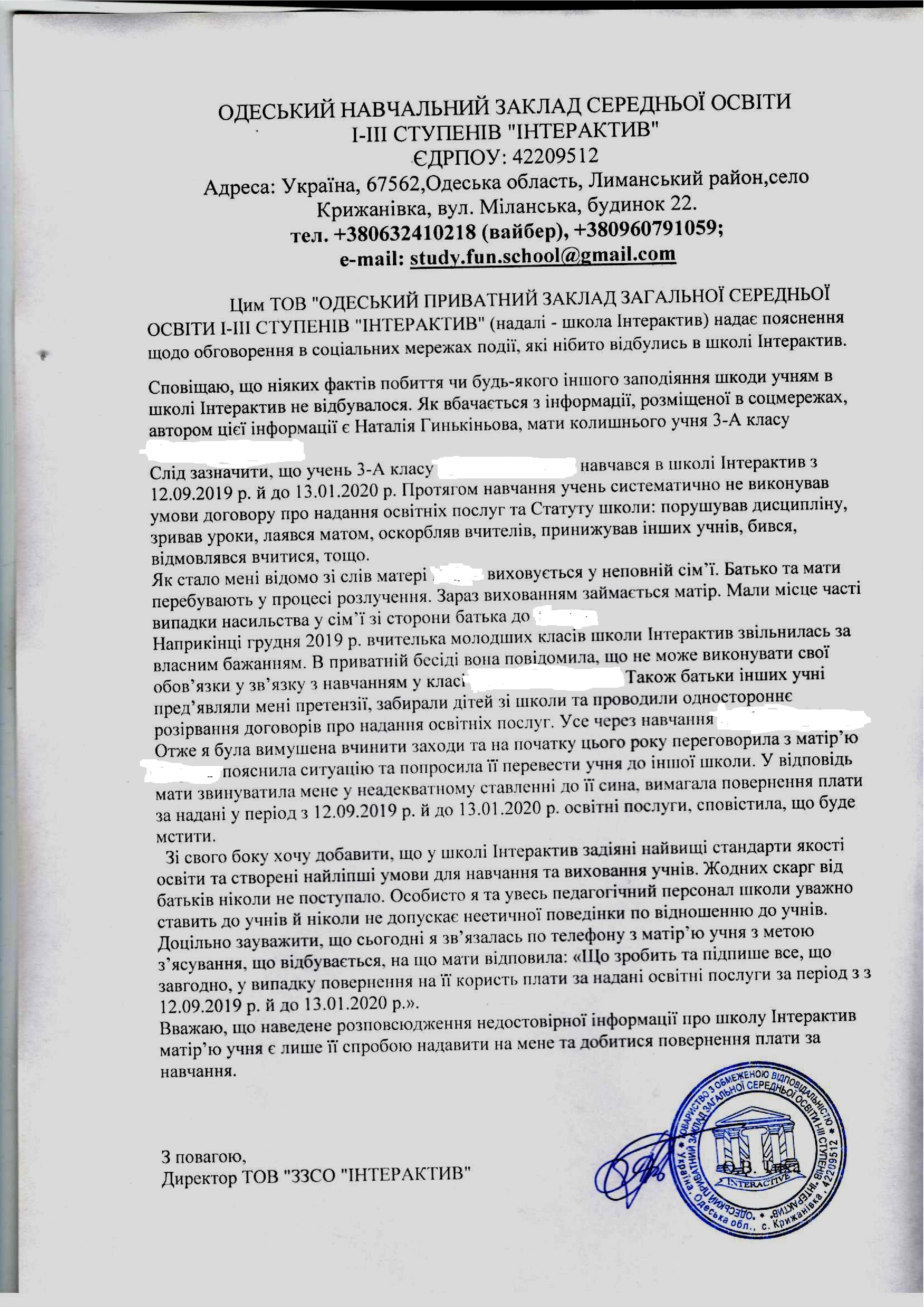 Департамент образования Одесской областной государственной администрации выясняет обстоятельства инцидента в частной школе «Интерактив», где учительница несколько раз ударила ученика.