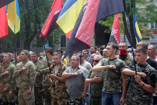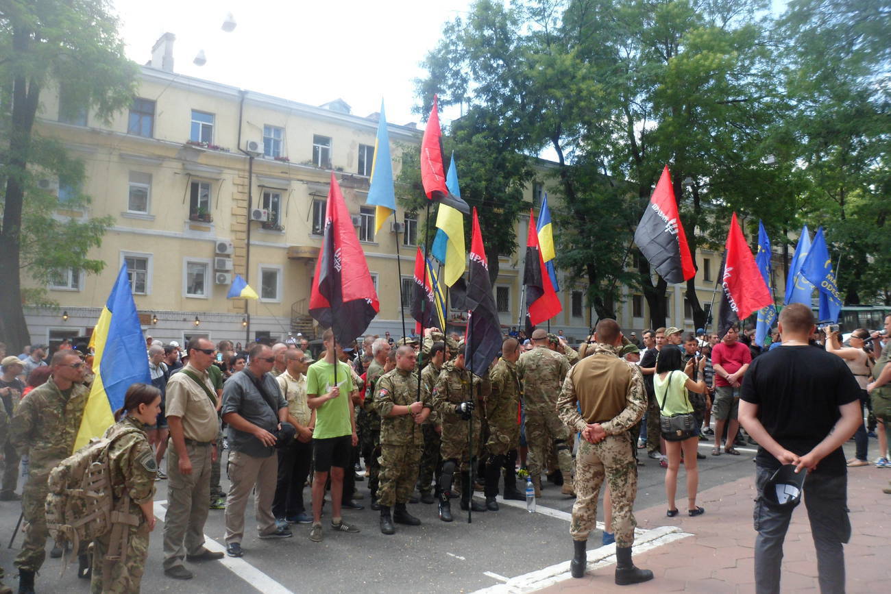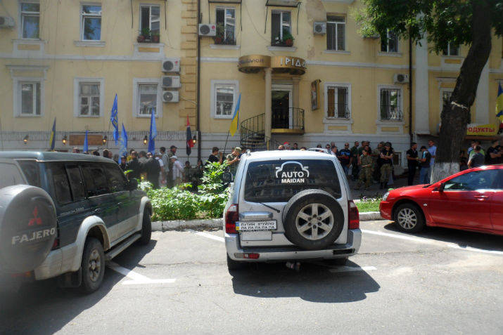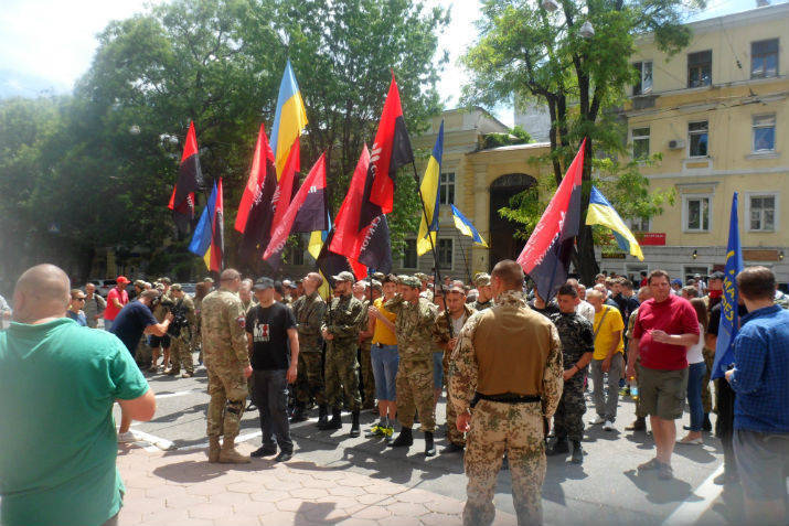 Около 150 активистов «Правого сектора», «Самообороны» и «Автомайдана» пришли сегодня под здание ГУ МВД Украины в Одесской области, чтоб выразить поддержку бойцам ПС в Мукачево