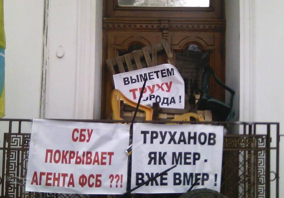 Напомним также, что группа неизвестных атаковала в ночь на 26 апреля и уничтожила палаточный городок активистов и предпринимателей, требовавших отставки мэра Одессы Геннадия Труханова. В свою очередь, протестующие заблокировали здание мэрии, перед центральным входом сложили покрышки и поставили мусорный бак, остальные входы в здание горсовета были заблокированы.