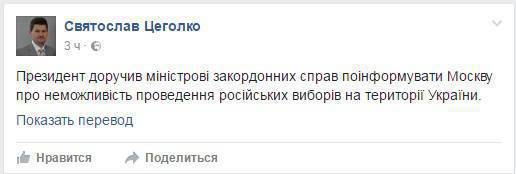Президент Украины Петр Порошенко поручил главе Министерства иностранных дел страны Павлу Климкину проинформировать российское руководство о невозможности проведения на территории Украины выборов в Государственную Думу Российской Федерации.