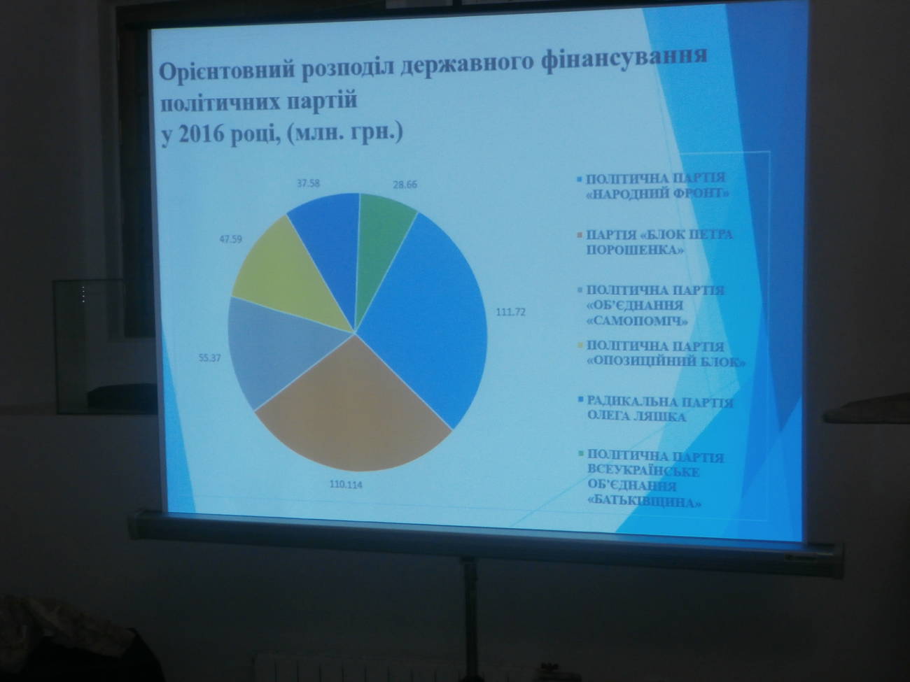 Право на государственное финансирование имеют 6 политических партий в Украине: «Народный фронт», «Оппозиционный блок», «Блок Петра Порошенко «Солидарность», «Батькивщина», Радикальная партия О. Ляшко и «Самопомич».