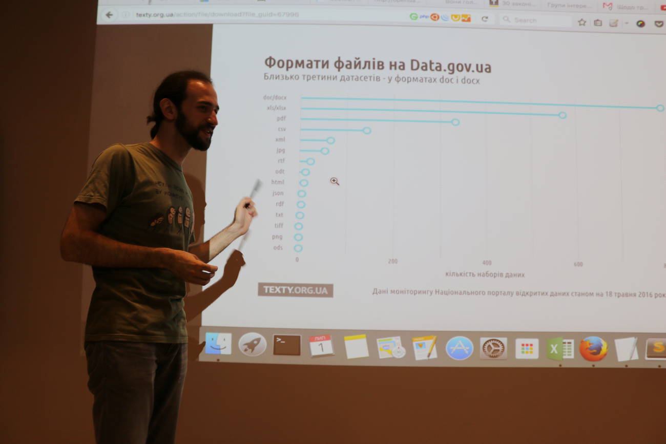 В. Гудыма не только рассказал, что собой представляют открытые парламентские данные, но и показал работу над разработкой портала изнутри, а также продемонстрировал наборы данных, функционал портала и продукты, созданные на основе открытых парламентских данных.