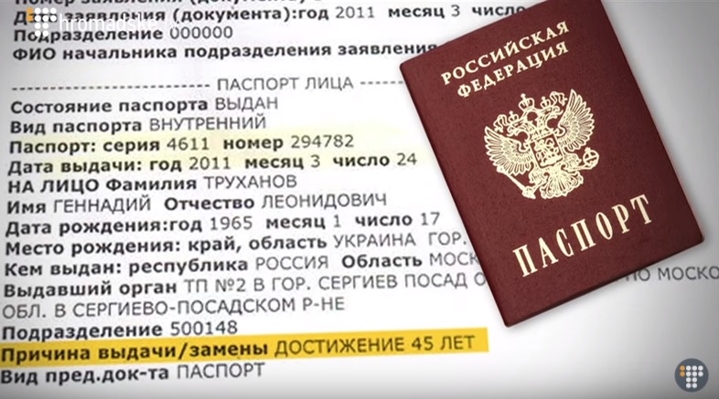 Ранее ГеннадийТруханов отрицал владение российским документом. Он утверждал, что его паспорт подделка, выполненная бывшим мэром Эдуардом Гурвицем.