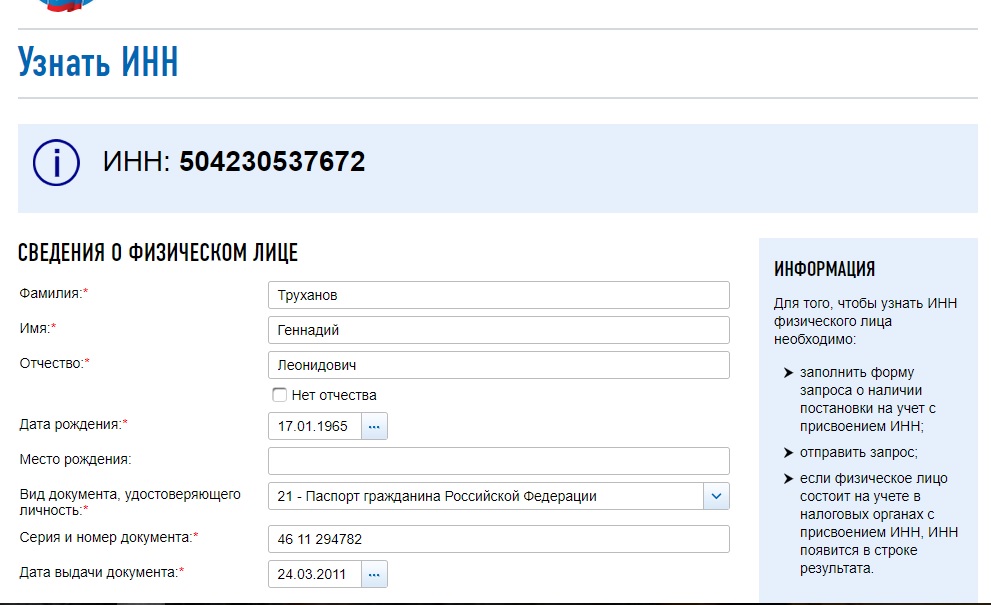 Как сообщил журналист Денис Казанский, данные о гражданстве моно узнать на сайте Федеральной налоговой службы Российской Федерации. Для этого нужно знать фамилию, имя, дату рождения и паспортные данные человека, чтобы получить в реестре ИНН. Первым под прицелом журналистов оказался мэр Доброполья Андрей Аксенов. Позже блогеры попробовали поискать данные и по одесскому мэру, и их поиски, вероятно, увенчались успехом. ИзбирКом также ввел в налоговом реестре данные паспорта, которые сообщались в расследовании "Слідство.info": серия 4611, номер - 294782. И результат также появился: