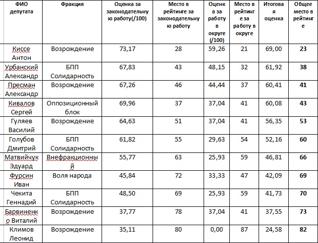 Сергей Кивалов занял 43-е место в рейтинге, Василий Гуляев – 53-е, Дмитрий Голубов – 60-е, Эдуард Матвийчук – 66-е, Иван Фурсин – 69-е, Геннадий Чекита – 70-е, Виталий Барвиненко – 73-е.