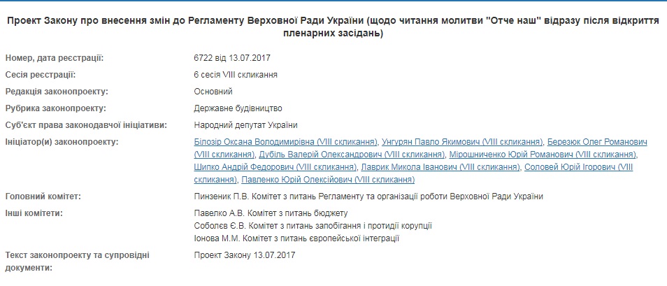 Среди инициаторов нововведения − народные депутаты Оксана Билозир, Олег Березюк, Валерий Дубиль, Юрий Мирошниченко, Андрей Шипко, Николай Лаврик, Юрий Соловей и Юрий Павленко.