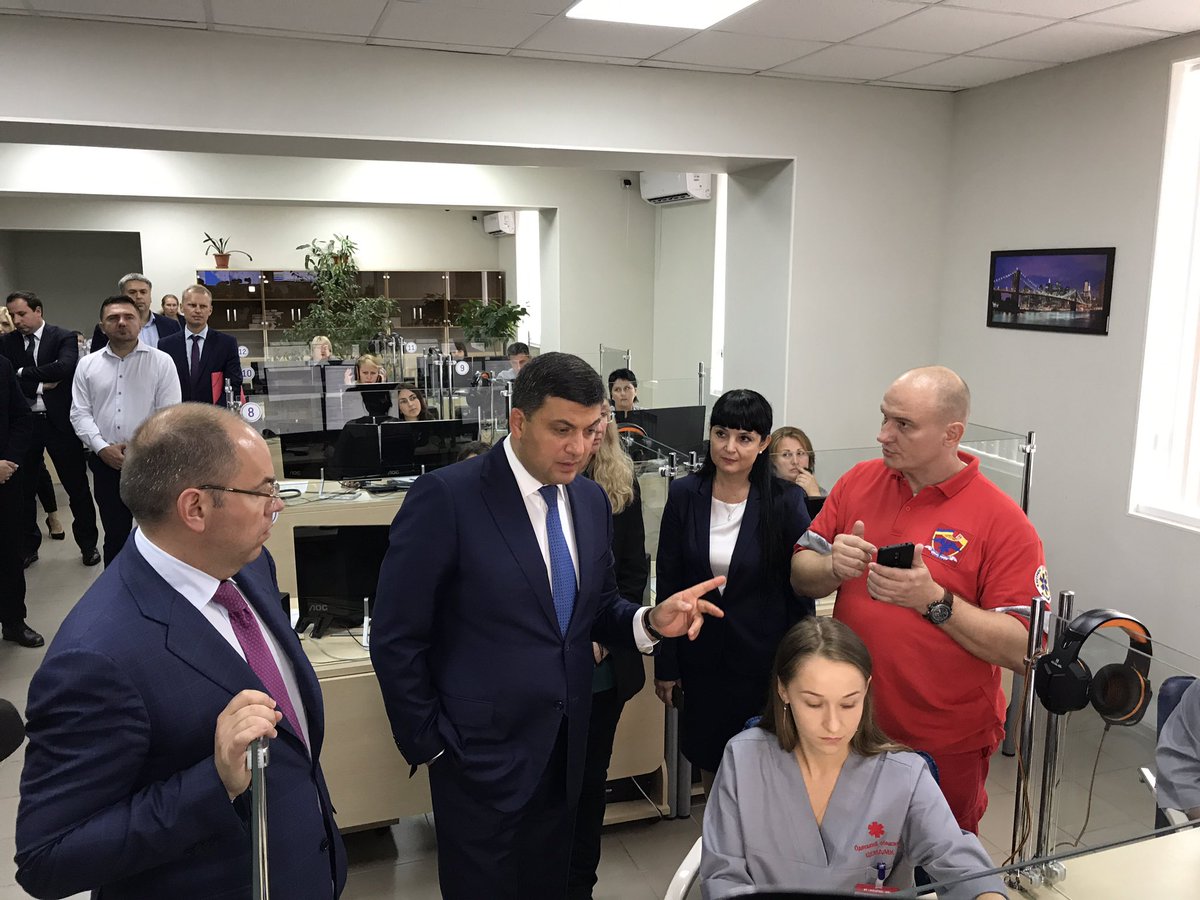 «Новая диспетчерская служба Одесского областного центра экстренной медицинской помощи. Три цифры телефонного номера запускают целую систему оказания помощи. Вызов - поиск ближайшей бригады по GPS - определение больницы. Полный контакт с экстренными службами МВД», - написал премьер-министр.