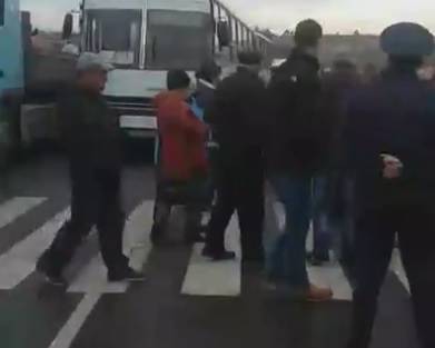 Сейчас из-за перекрытия трассы простаивают десятки фур, легковых машин и рейсовых автобусов, конфликт разгорается.
