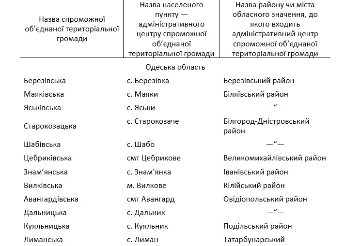Напомним, в октябре прошлого года Кабинет Министров Украины принял аналогичное распоряжение «О признании состоятельными объединенных территориальных громад», согласно которому состоятельными в Одесской области были признаны восемь громад.