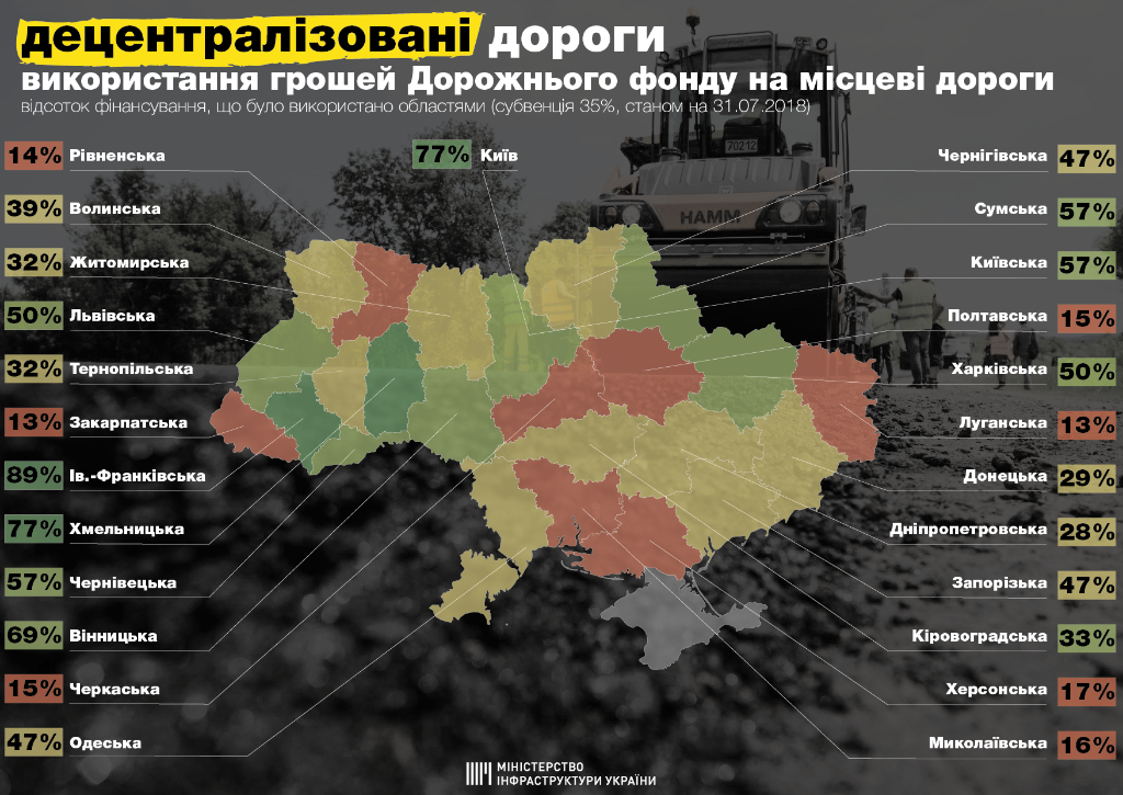 По информации министерства, на 31 июля самый высокий уровень использования средств фонда в Ивано-Франковской (89%), Хмельницкой (77%) и Винницкой (69%) областях.