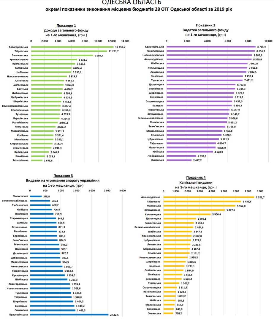 Эксперты Одесского регионального офиса ULEAD проанализировали финансовые показатели 806 объединенных территориальных громад отдельно по каждой области по итогам 2019 года и отметили, что ряд громад Одесской области существенно улучшили свои показатели.