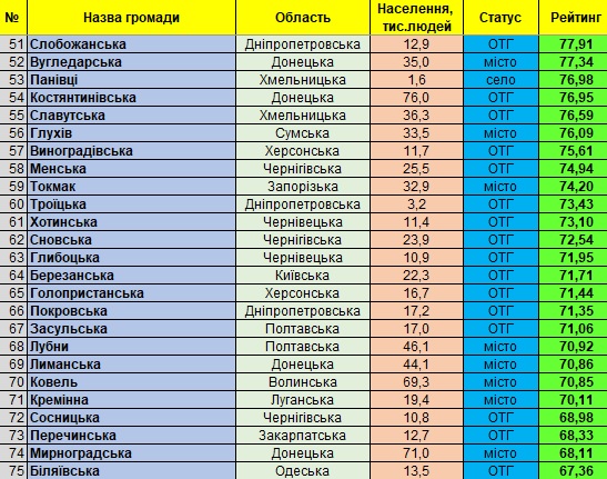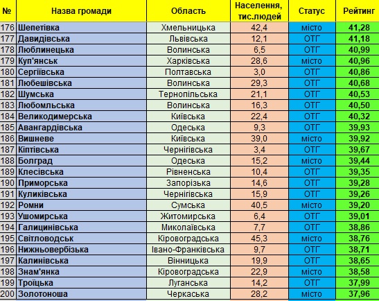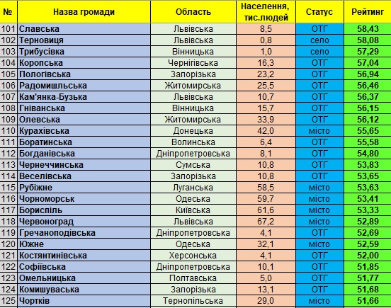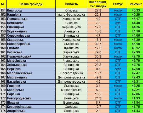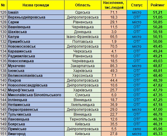 Громада Черноморска заняла 116 место, Южного -120, Измаила - 126 место. Замыкают рейтинг Красносельская ОТГ - 174 место, Авангардовская ОТГ - 185 место. Громада города Болград заняла 188 место.