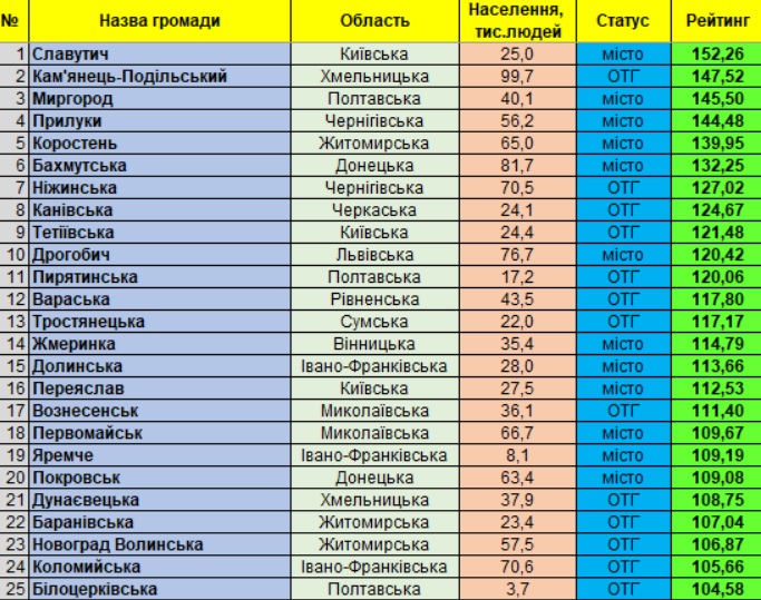 Согласно информации регионального центра, рейтинг учитывает 38 критериальных показателей и отражает инвестиционную привлекательность громад в 2020 году. Оценивание проходило, в частности, по таким показателям как наличие инфраструктурных проектов, глобального видеомониторинга, постоянных международных контактов, инвестиционных паспортов и тому подобное.