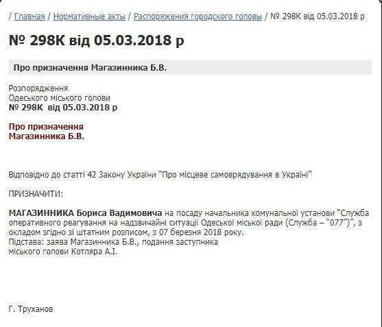 С 7 марта начальником коммунального учреждения "Служба оперативного реагирования на чрезвычайные ситуации Одесского городского совета" назначен Борис Магазинник.