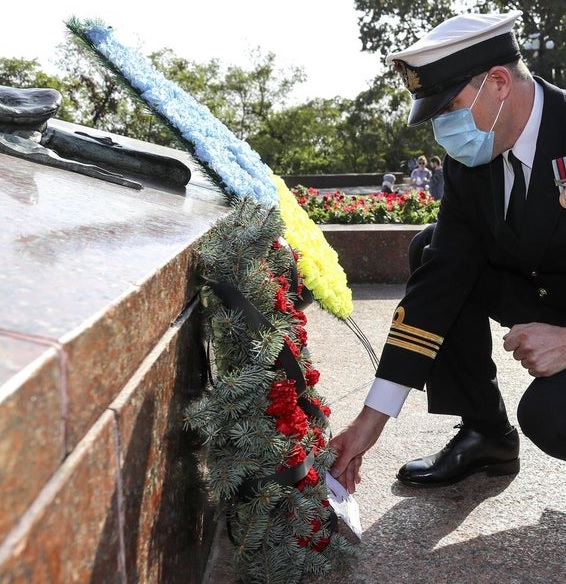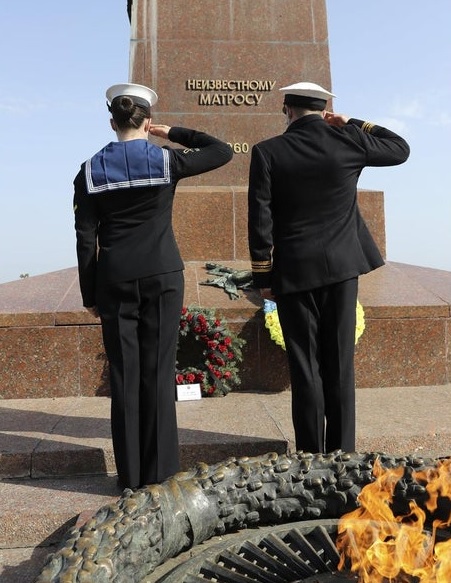 Команда HMS Dragon отдала дань уважения украинскому воинскому мемориалу Неизвестному матросу в Одессе. Возложили венок и почтили минутой молчания память жертв.