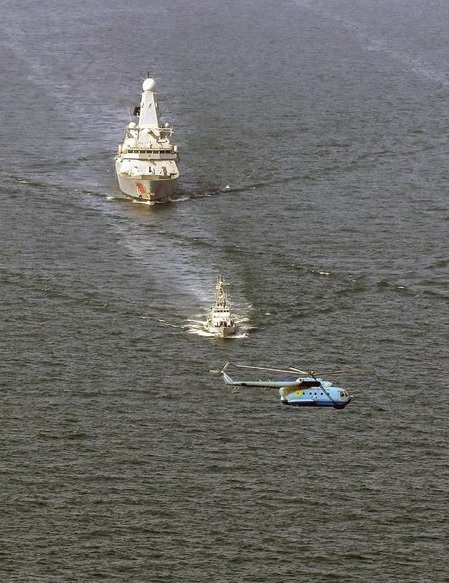 HMS Dragon проводит маневры с украинской военно-морской флотилией в Черном море у побережья Одессы.