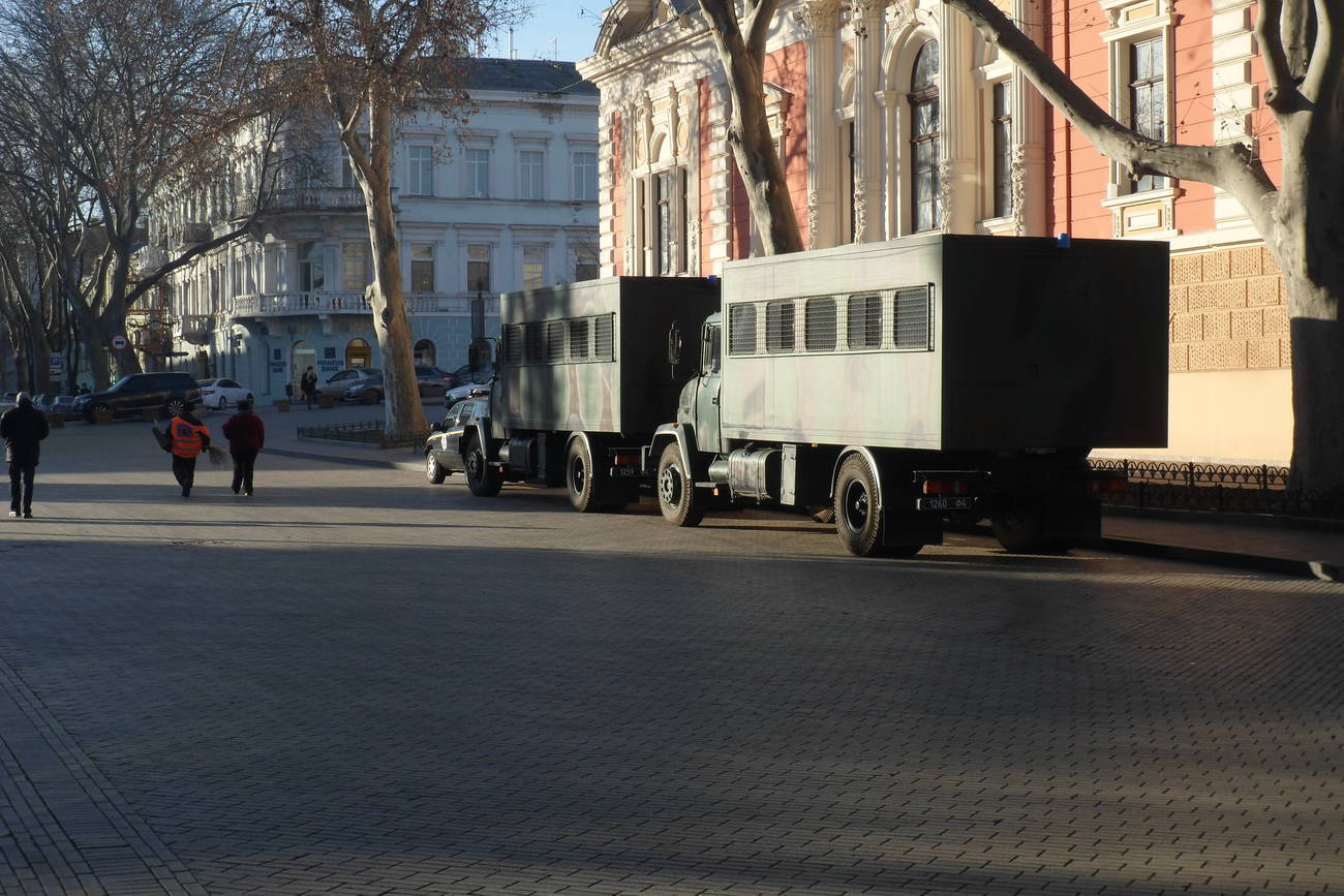 09:27 У здания мэрии начинают собираться митингующие. Накануне патриотические организации ананосировали крупный митинг против застройки Одессы и за признание РФ агрессором. Сейчас на Думской площади - около 10 митингующих. Поблизости стоят два автозака, автобус с сотрудниками полиции и еще один - с неизвестными лицами в гражданском