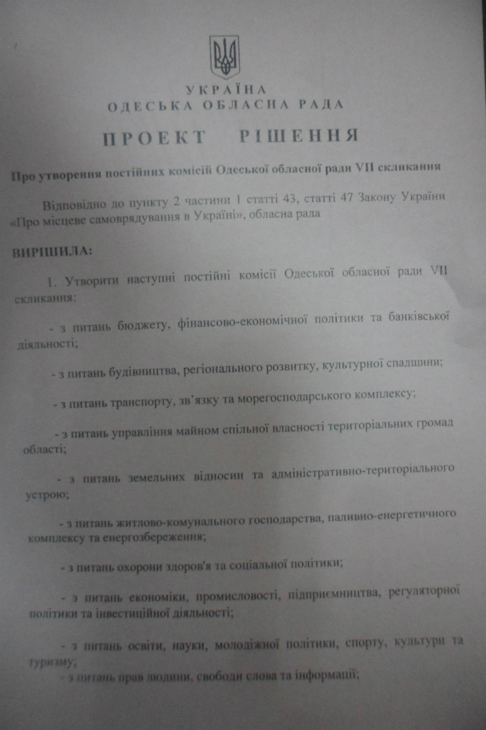 10:40 Начинают рассматривать проект Регламента работы первой сессии Одесского областного совета VII созыва