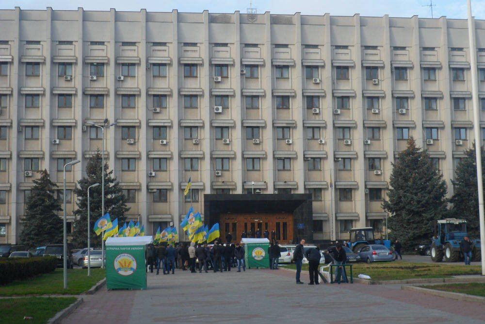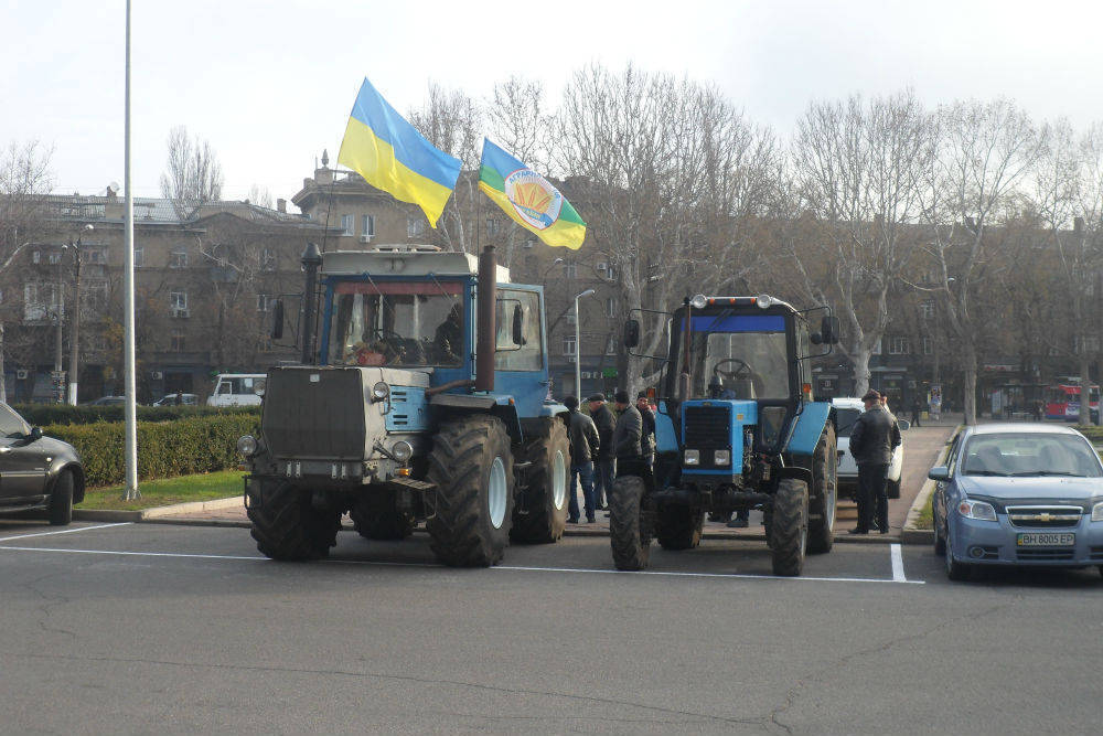 09:40 У здания облсовета на проспекте Шевченко собрались около сотни сторонников Аграрной партии. Они также поставили на площади перед зданием два трактора со звукоусилительной аппаратурой. Митингующие выразили протест относительно сохранения в бюджете 2016 года существующей системы налогообложения для предприятий АПК. По их словам, «новый Налоговый кодекс отбросит аграрную отрасль на десятилетия назад, с прилавков исчезнут молочные и мясные продукты украинского производства, а работы лишатся около 100 тыс. человек». К активистам вышел первый заместитель председателя Одесского облсовета Олег Радковский, который пообещал принять резолюцию их митинга и передать ее лидеру партии ВО «Батькивщина» Юлии Тимошенко, которая зачитает ее на одной из ближайших сессий Верховной Рады