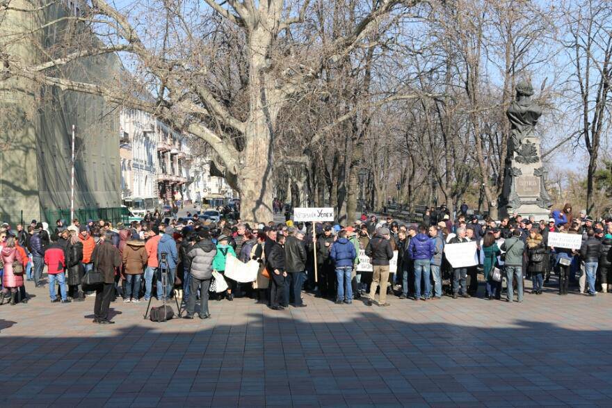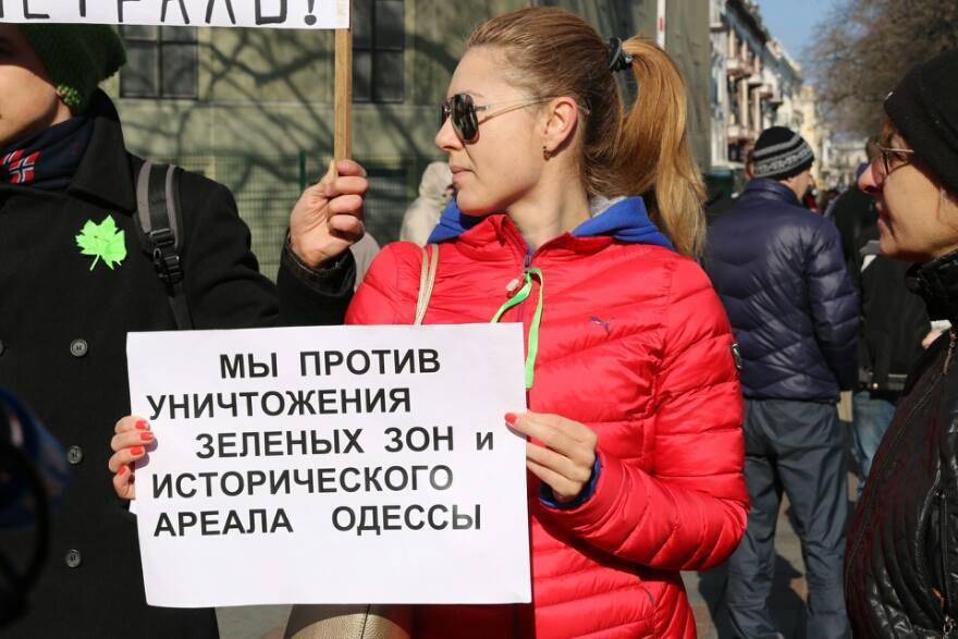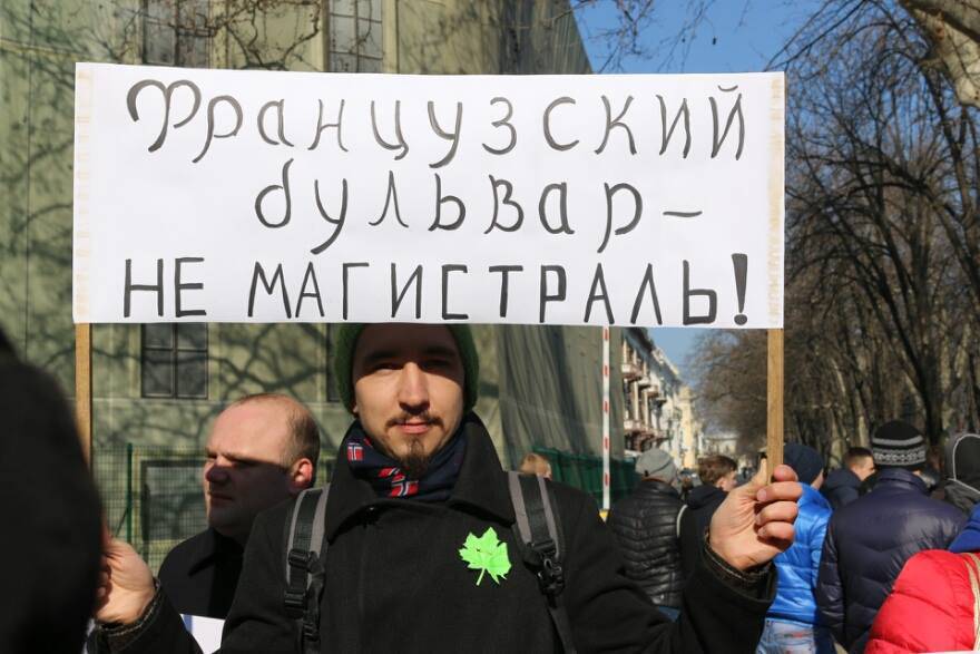 09:43 Под стенами горсовета - несколько митингов. Участники одного из них протестуют против расширения Французского бульвара, поскольку буквально в понедельник, 14 марта, городской голова Геннадий Труханов на аппаратном совещании заявил, что бульвар будет расширен. По мнению активистов, это уничтожит бульвар и деревья вдоль него, а проблему жителей высоток не решит
