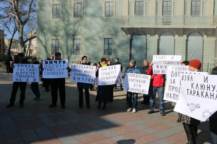10:01 У здания мэрии - еще один митинг, против вице-мэра Олеся Янчука