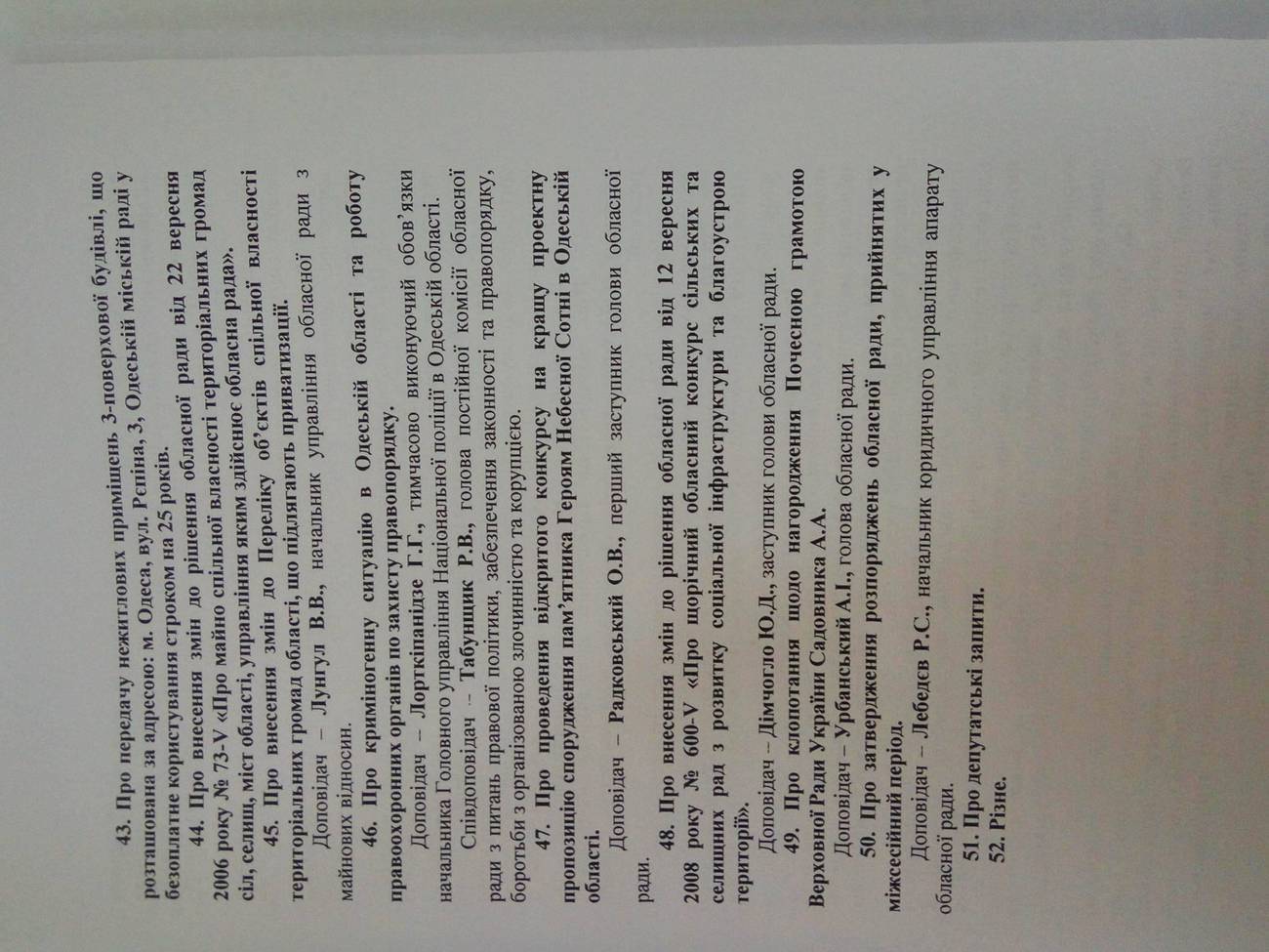 12:05 Вопрос о внесении изменений в решение областного совета от 24 декабря 2013 года «Об утверждении Региональной программы поддержки развития книгоиздания и средств массовой информации в Одесской области на 2014-2016 годы». Голосуют без обсуждения за