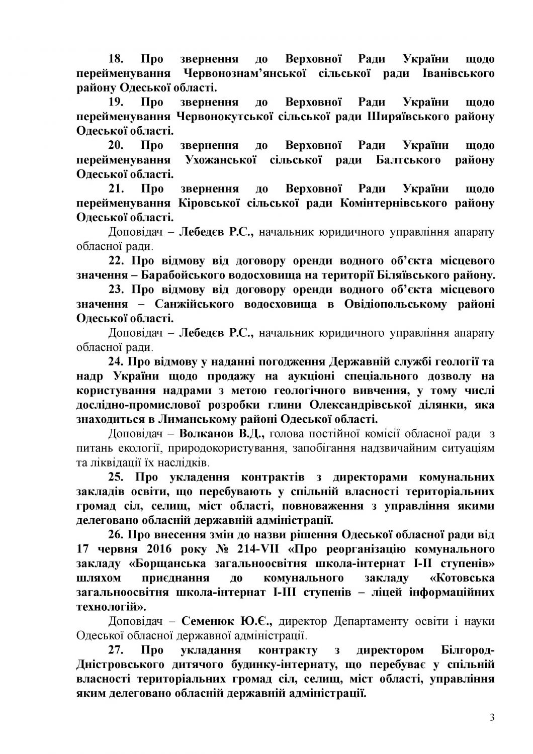 Он также требует не рассматривать вопрос "Об утверждении областной программы предоставления финансовой поддержки коммунальным предприятиям (учреждениям, организациям) совместной собственности территориальных общин Одесской области, которые обеспечивают деятельность областного совета и областной государственной администрации, на 2017-2019 годы", до того как руковдители КП отчитаются о своей деятельности.