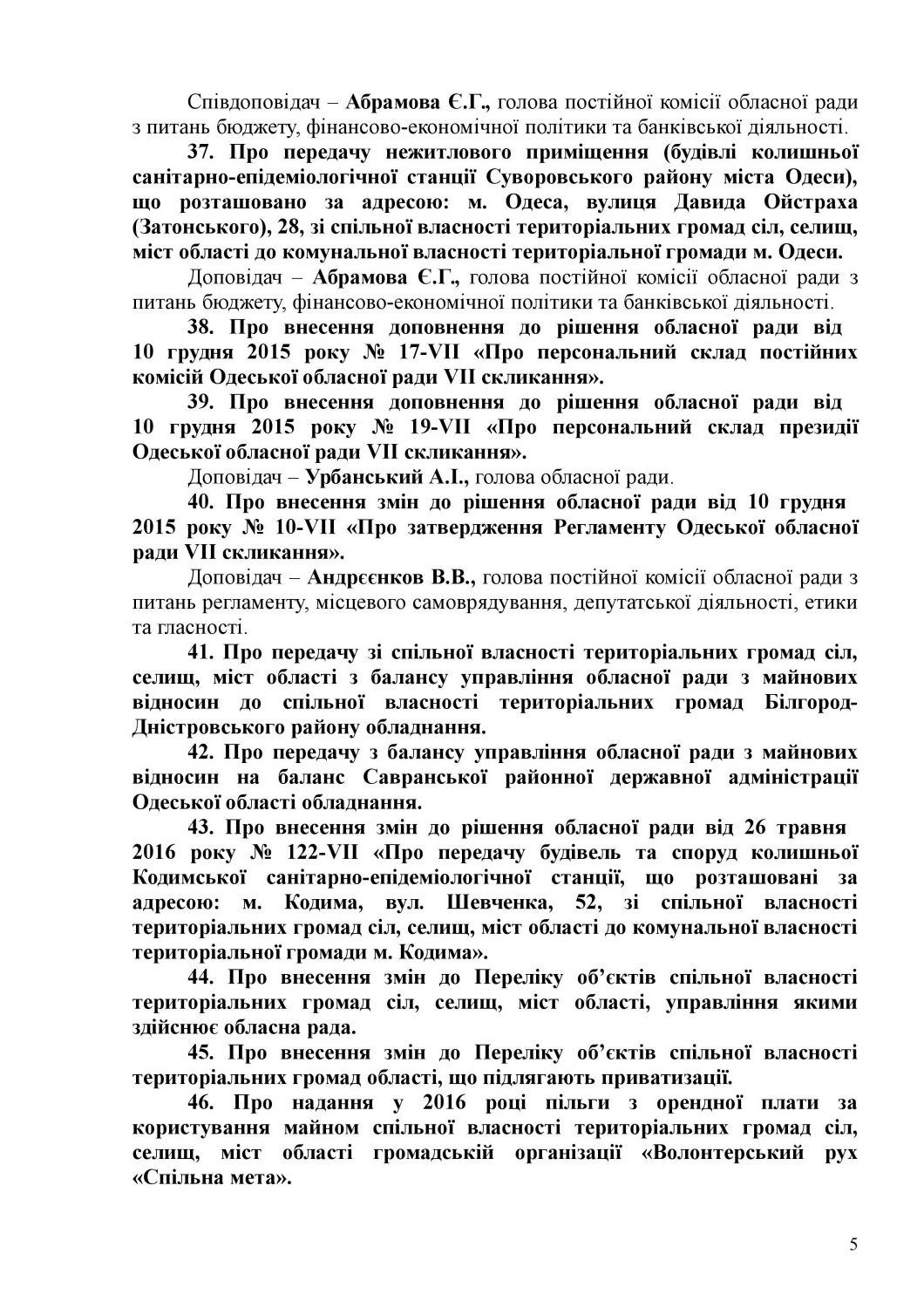 9:50 Накануне сессии постоянная комиссия областного совета по вопросам управления имуществом общей собственности территориальных громад области отправила на доработку проект решения о передаче здания бывшей санитарно-эпидемиологической станции Суворовского района города Одессы, расположенного по адресу: город Одесса улица Давида Ойстраха (Затонского), 28 в собственность городского совета Одессы.